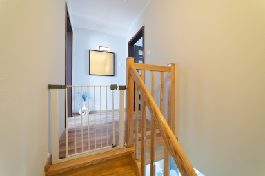 - dwóch oddzielnych, zamykanych sypialni na piętrze (w jednej łóżko małżeńskie, w drugiej dwa pojedyńcze, w każdej jest szafa),
