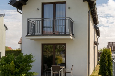 Każdy domek ma swoją częśc rekreacyjną na zewnątrz, a na niej grill. kpl wypoczynkowy i oczywiście parking.